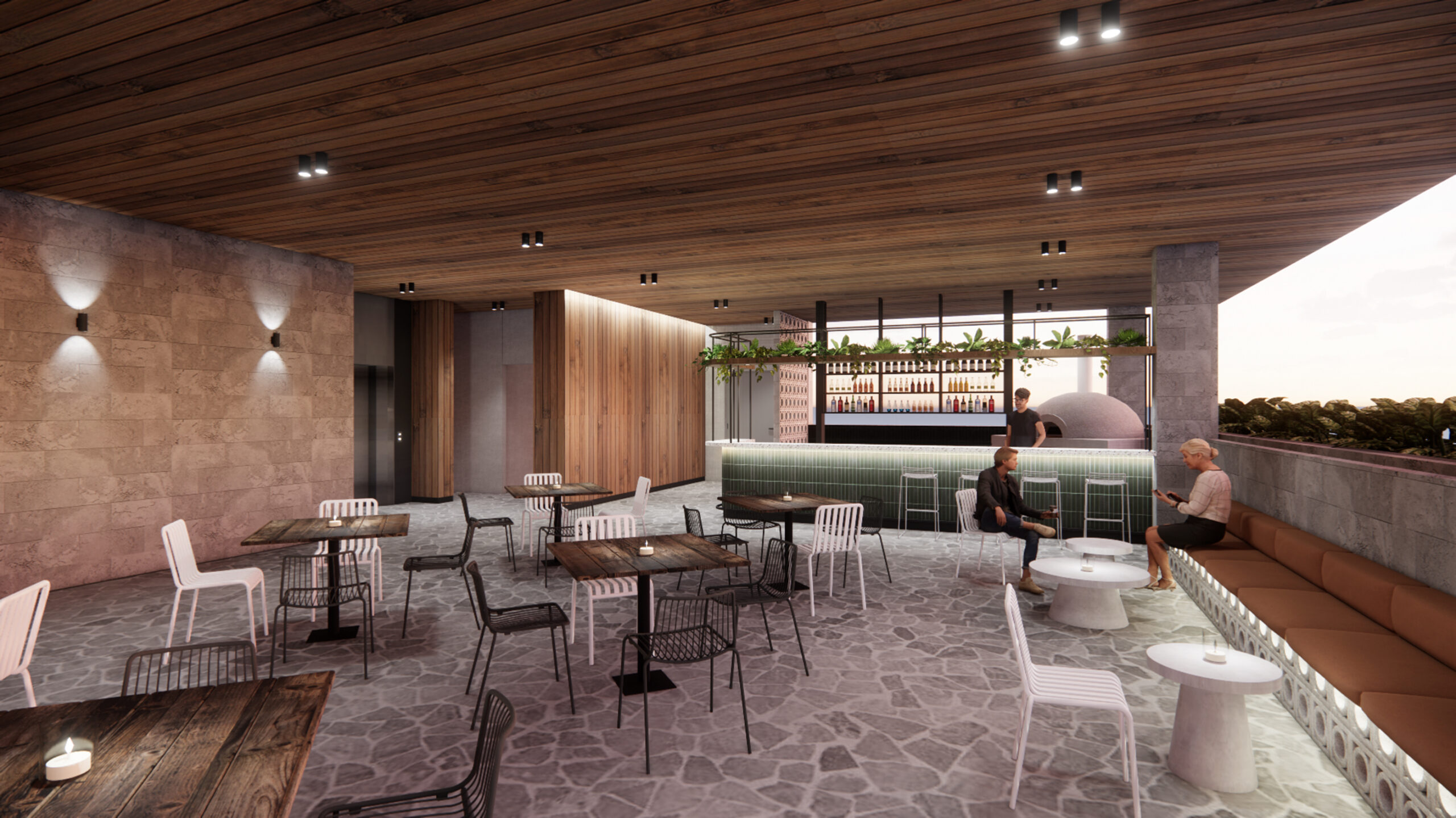 That was achieved by introducing a vibrant palette complemented by timber ceilings and high-end finishes that interplay between all the elements to create a functional, welcoming space. With magnificent ocean views, a bar and a rooftop pool with comfortable seating and roof cover are the ideal addition to keep the area warm, welcoming and suitable for entertaining.